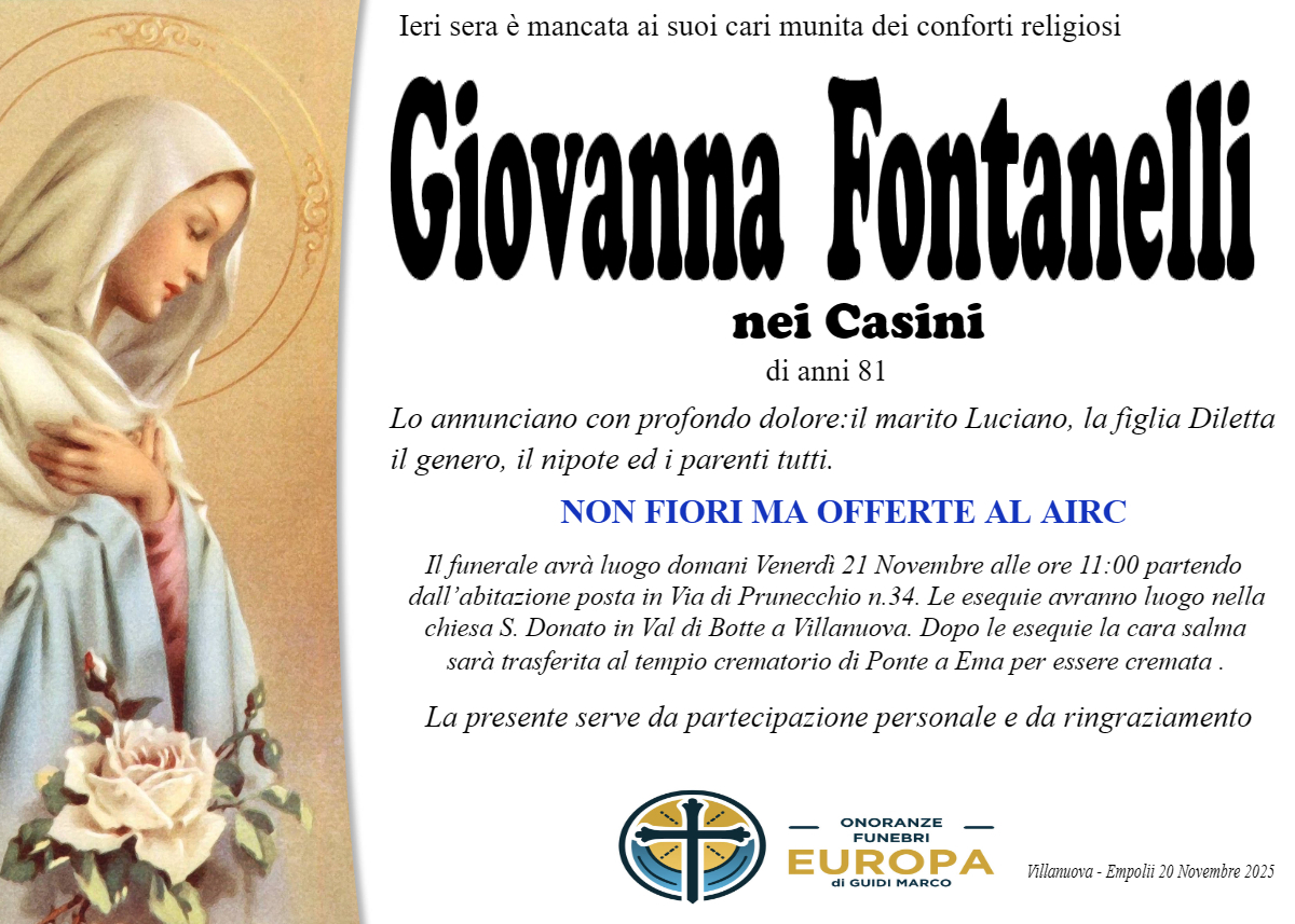 Onoranze Funebri Europa di Guidi Marco - Empoli - Reperibilità h24 per Servizi Funebri Empoli