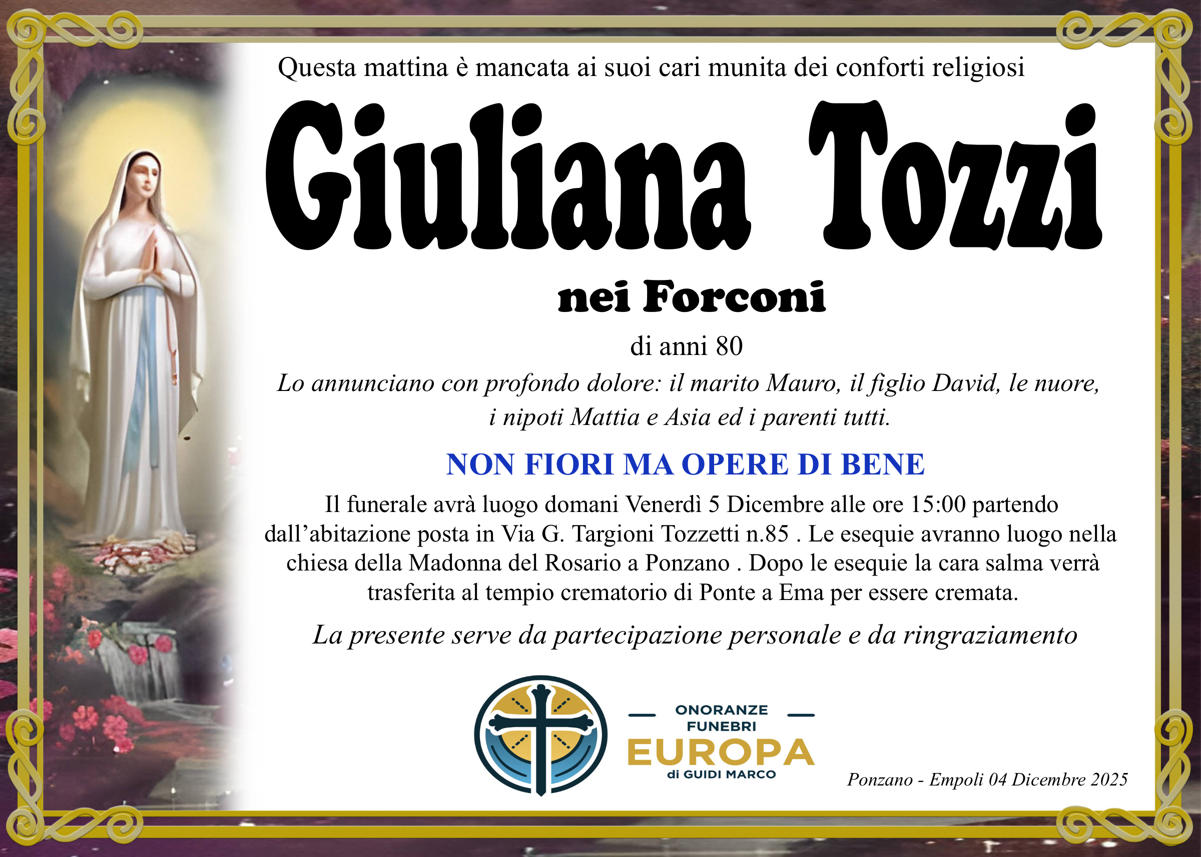 Data Funerale: 05/12/2025