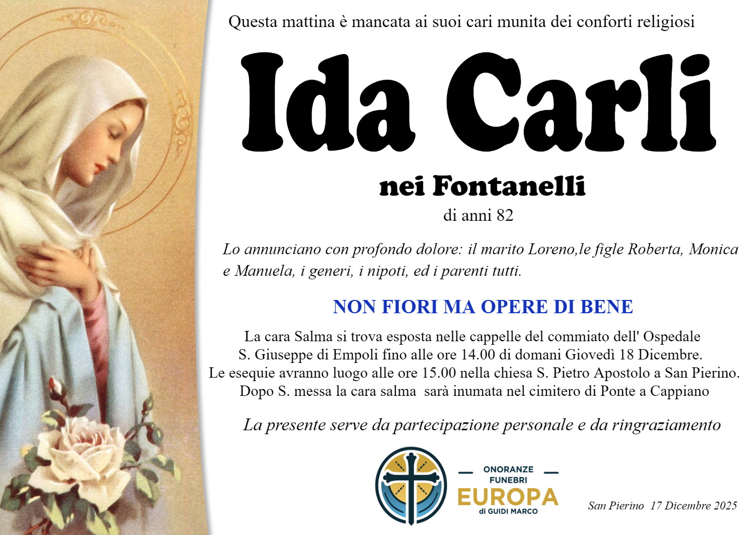 Lo annunciano con profondo dolore: il marito Loreno, le figlie Roberta, Monica e Manuela, i generi, i nipoti ed i parenti tutti