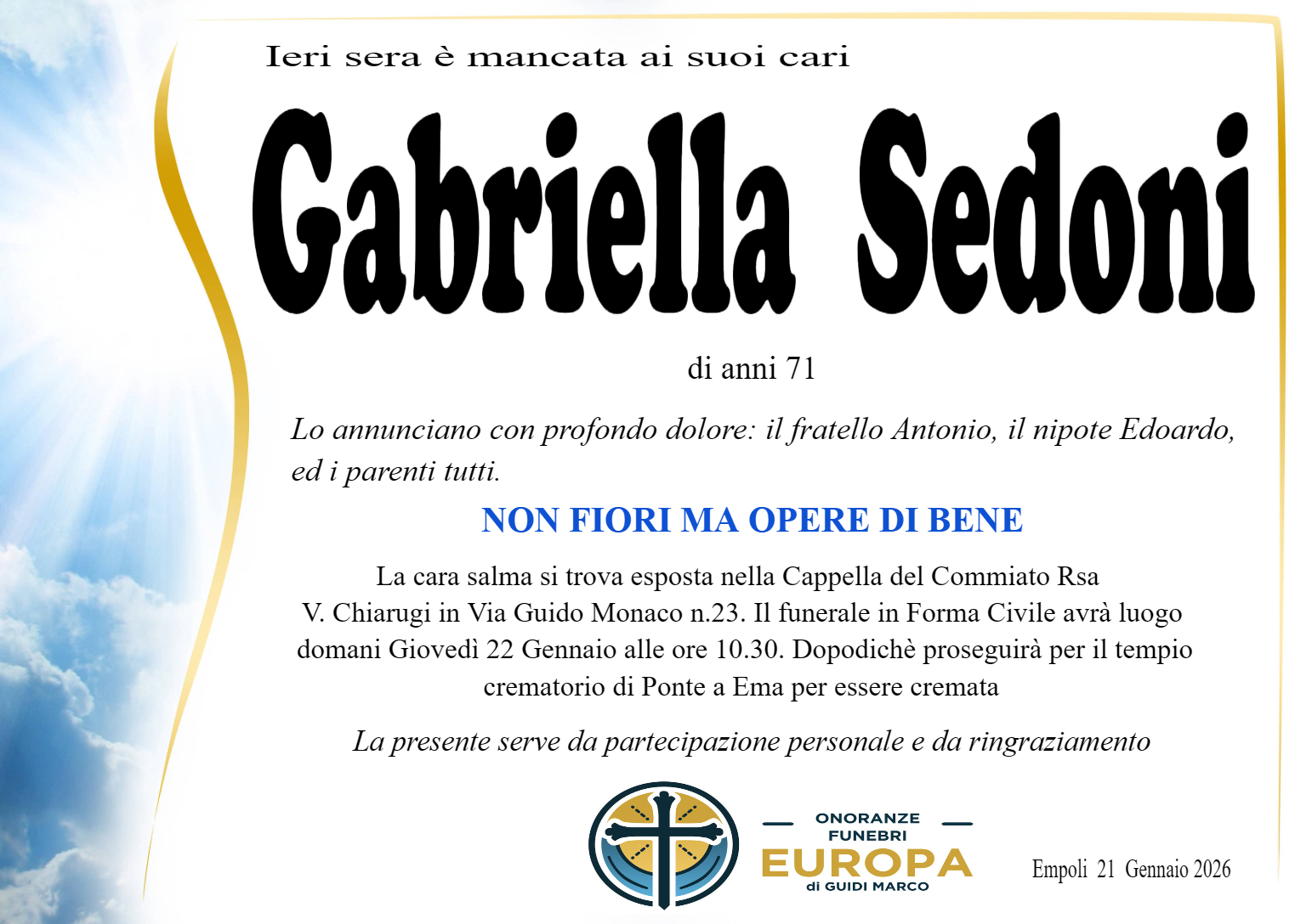 Sei qui: Condoglianze On-line GABRIELLA SEDONI