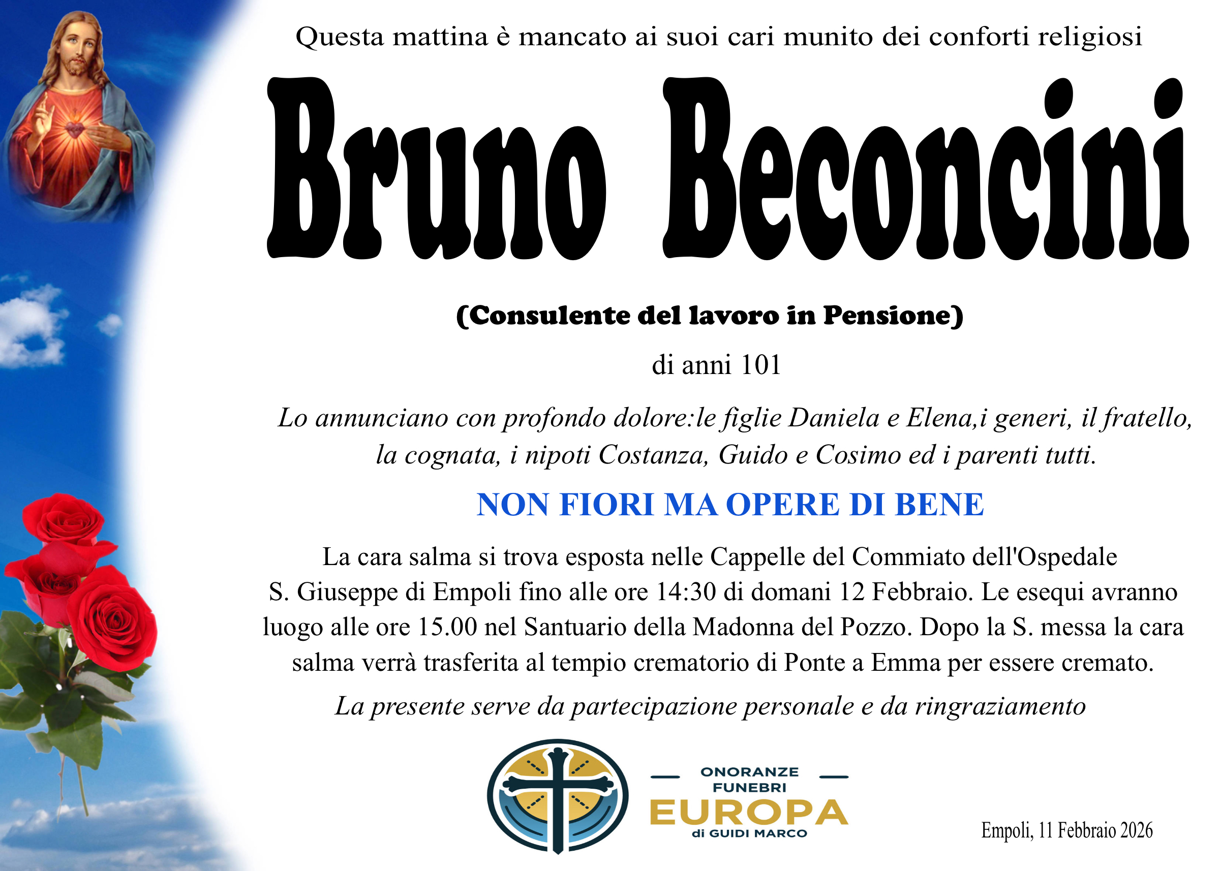 Sei qui: Condoglianze On-line BRUNO BECONCINI